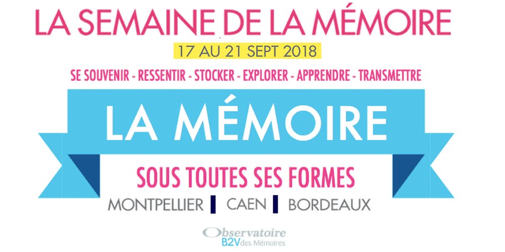 La 3ème édition de la semaine de la mémoire se tiendra notamment à Montpellier, du 17 au 22 septembre. Cet évènement, gratuit et ouvert à tous, nous propose d'explorer la mémoire sous toutes ses formes : mémoire et oubli, mémoire et musique, mémoire et corps, mémoire individuelle et collective...